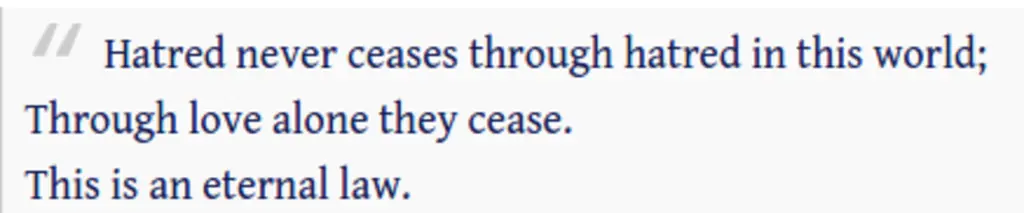 Hatred never ceases through hatred in this world; Through love alone they cease. This is an eternal law.