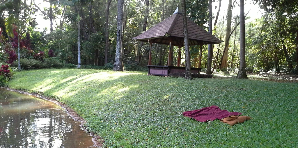 These days, most meditators meditate inside buildings on flat and hard surfaces. One should try to meditate outside on a nice grassy area that has a 20 to 30° angle. It does not take much to find such a place and if you do, you might feel there is no need for pillows or other bulky equipment for your comfort. Go ahead and give it a *try!