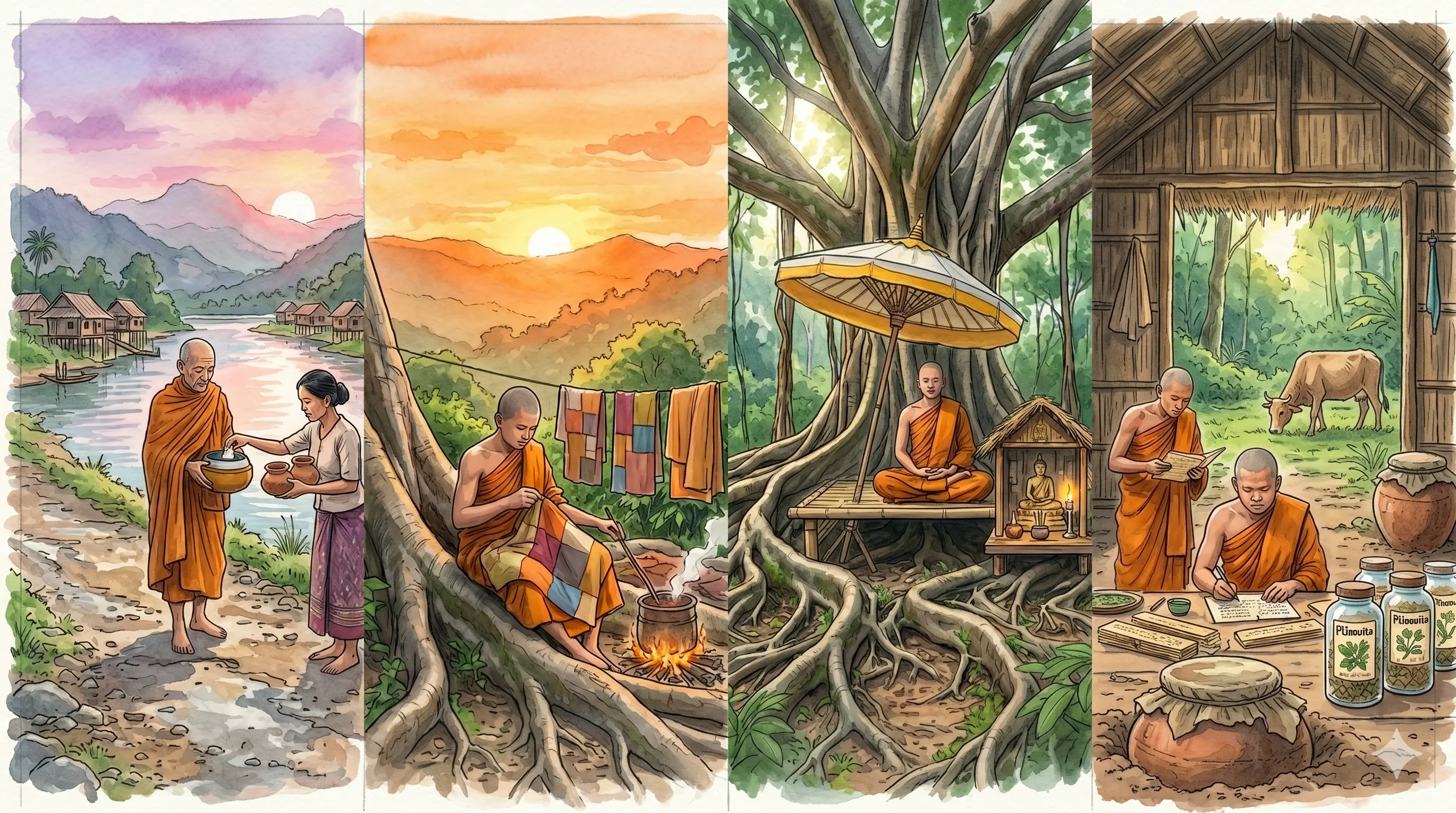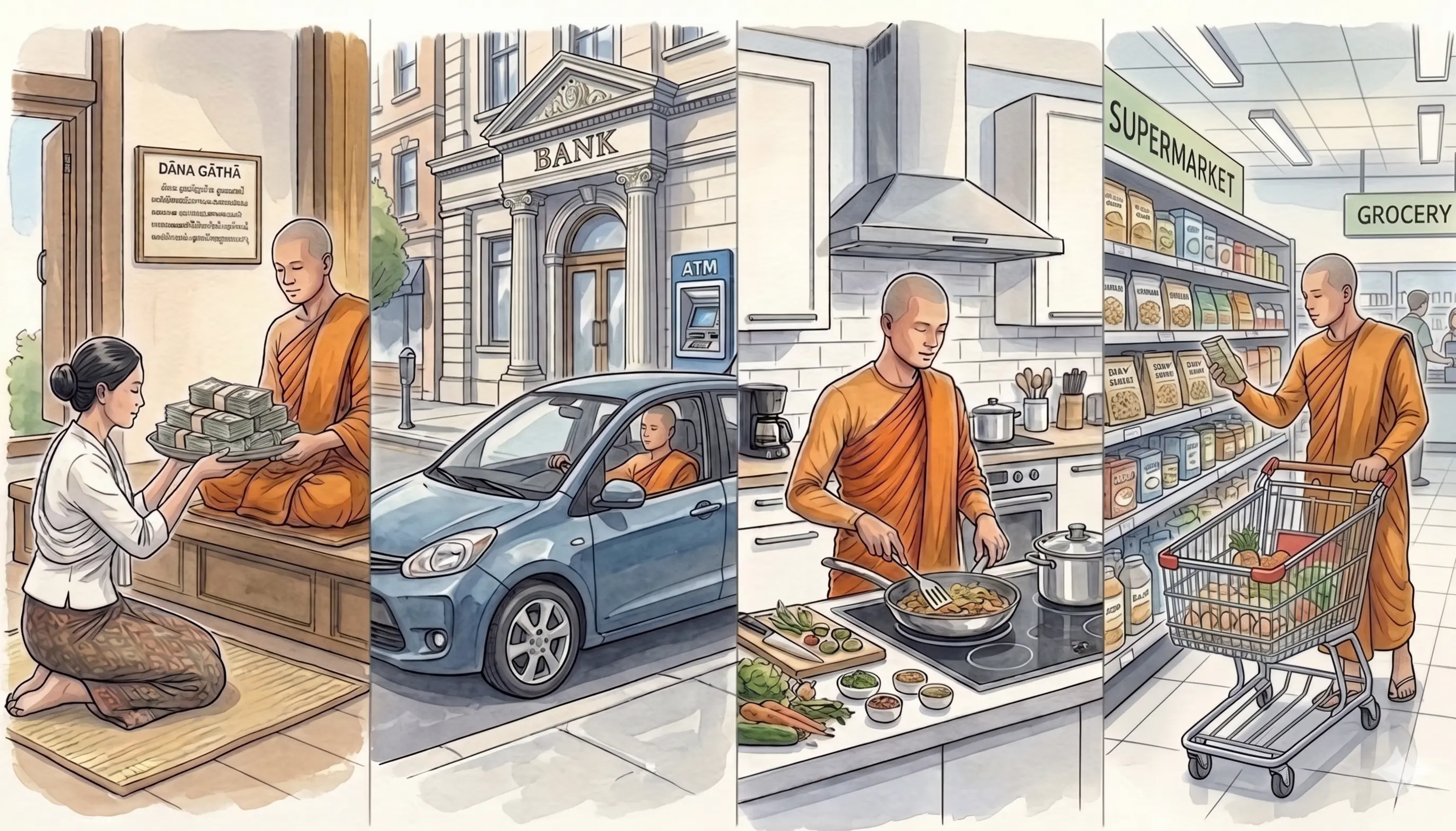 In contrast, a Forest Vinaya monk does not use money. They do not use credit cards. They do not cook for themselves. They only eat food that is formally offered to them. They do not buy their own food. They do not drive cars.